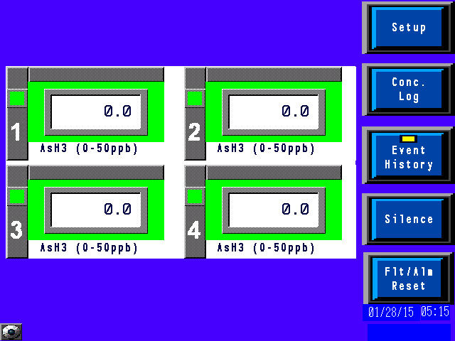 The ChemLogic® 4 point continuous monitor system features ChemLogic® technology with a new intelligent optic system that reduces maintenance and decreases the risk of false positives. This system has a state-of-the-art and user-friendly touch screen control with a CF data collection system. The ChemLogic® 4 surpasses the competition in reducing initial investment and cost of ownership.